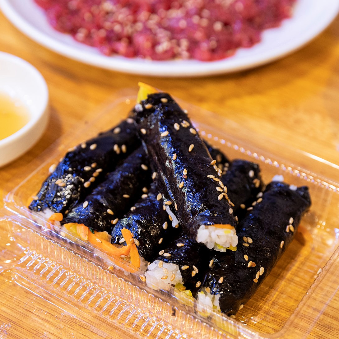 What it is: Rice and assorted fillings wrapped in seaweed. Think sushi, but Korean-style.